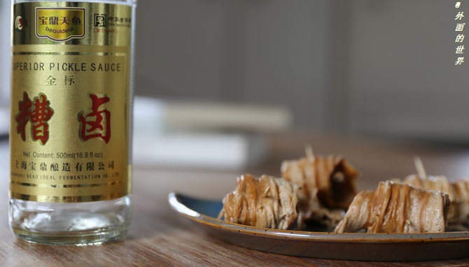 鱼用盐抹一遍风干一下,然后蒸熟,用了一瓶糟卤腌上,在冰箱放一天就可以吃啦。