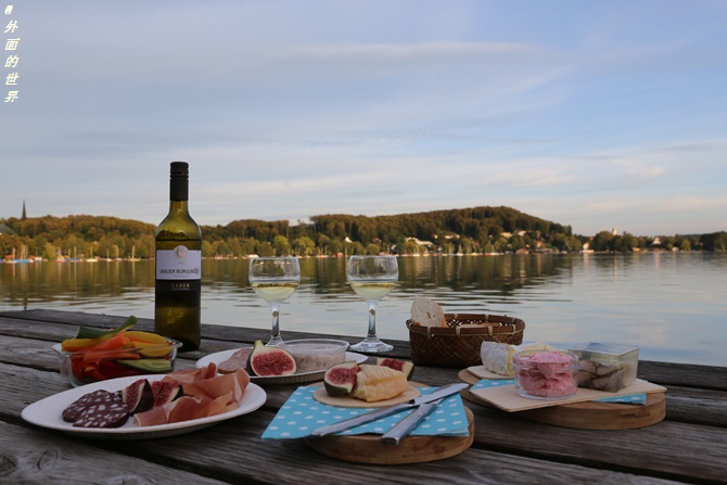 在湖边享受晚餐的时光