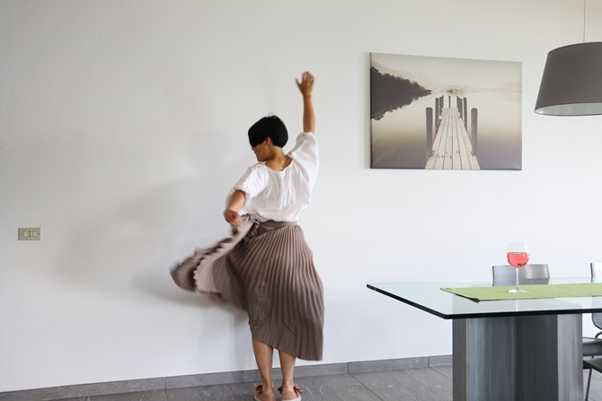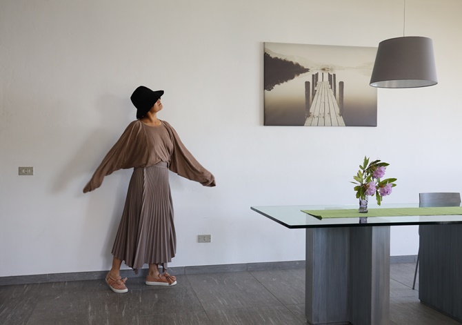 自驾旅行 可以多带几件衣服出门, 一年多都没有正经穿衣服鞋子了。 真的都不知道出门怎么穿。 其实带的这些衣服很多也没有穿。我们的度假屋要徒步下山, 出门还是要以舒服为主, 很多衣服没有穿 ,有点不甘心 ,那天下雨,自己就在度假屋玩自拍。