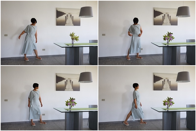 鸭蛋青色的裙子,去年解封出门吃饭穿过一次,系腰带和不系腰带的效果