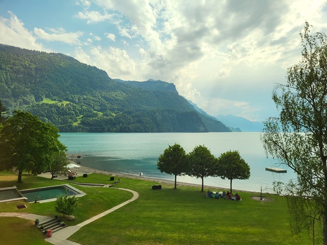 我们下午到达因特拉肯(Interlaken)的旅馆,老公问我要不要进城? 看到眼前的风景,我哪儿都不想去,坐在这里一直呆到睡觉。。。