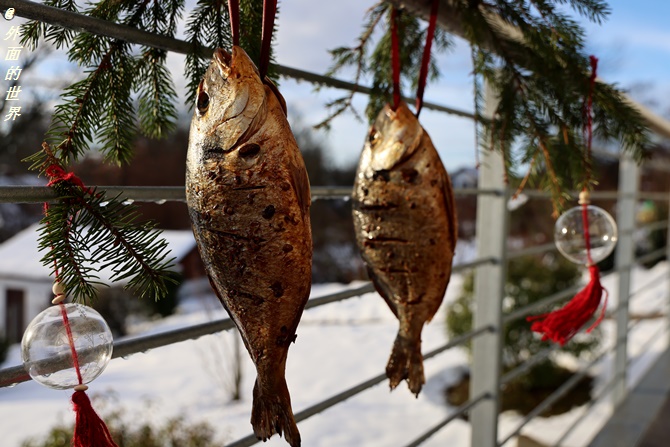 圣诞节很多人家的阳台张灯结彩,我家阳台是年年有鱼