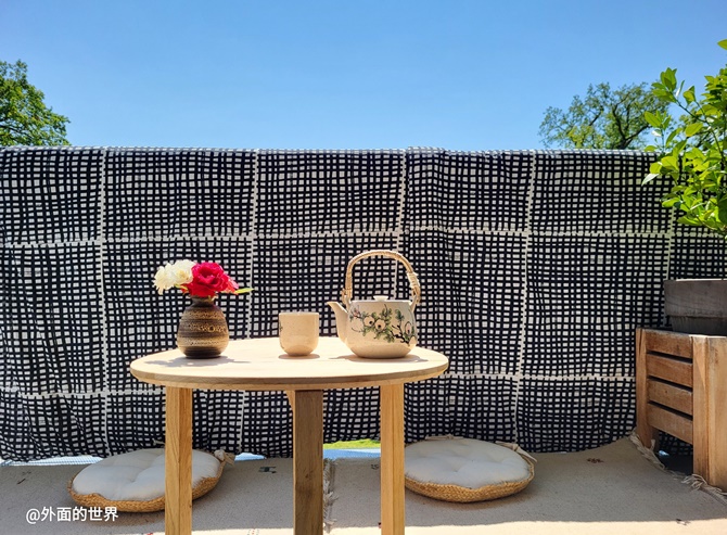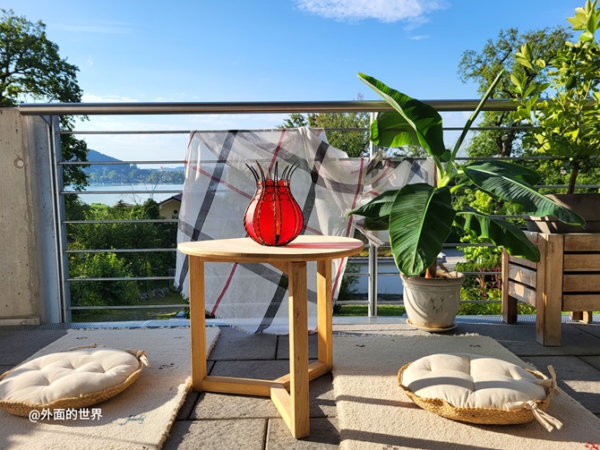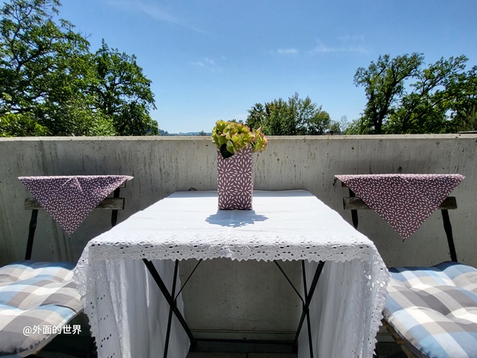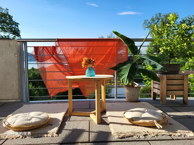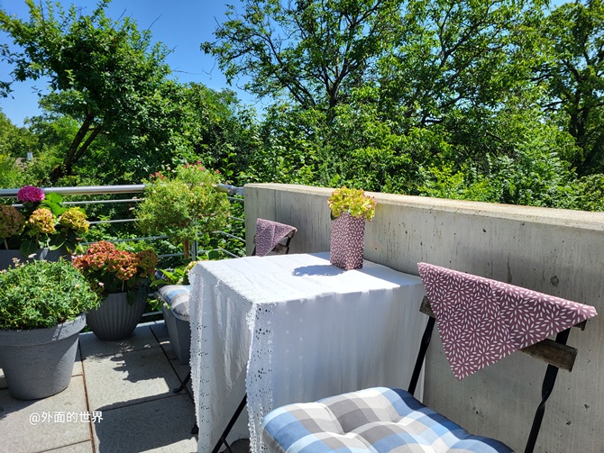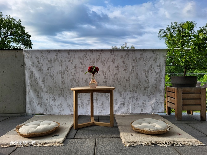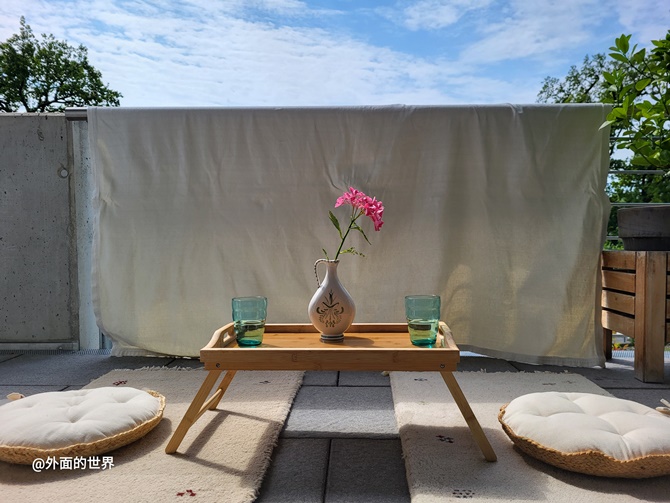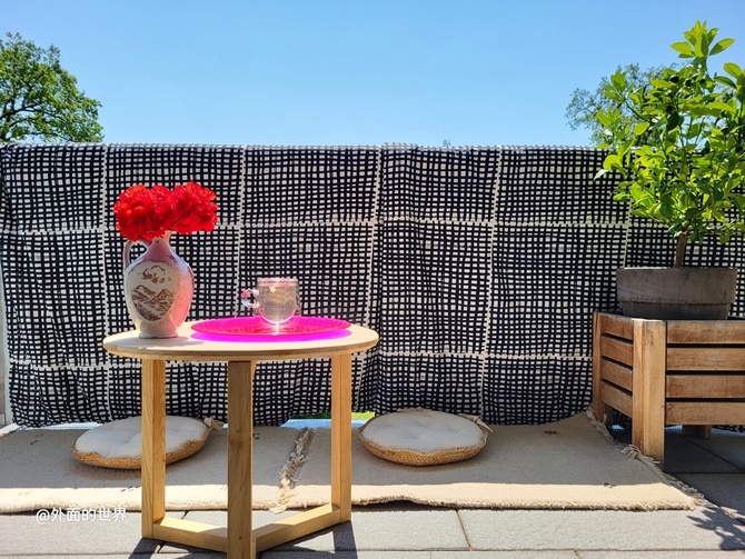 好天气正是晒被子的好时机, 阳光中的紫外线有助于消灭被子中的细菌。想起小时候家里不仅晒被子,换季还要晒衣服,箱子里的衣服都是一股樟脑丸的味道。晒被子也让我玩出心花样,在阳台上布置出自己喜欢的一角。