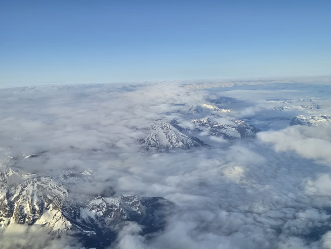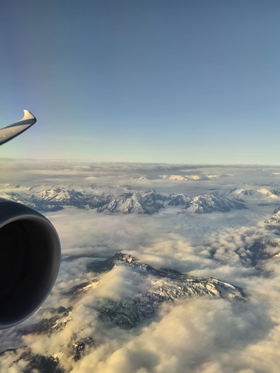 飞机落地前,虽然阴天还是看到时隐时现的阿尔卑斯山