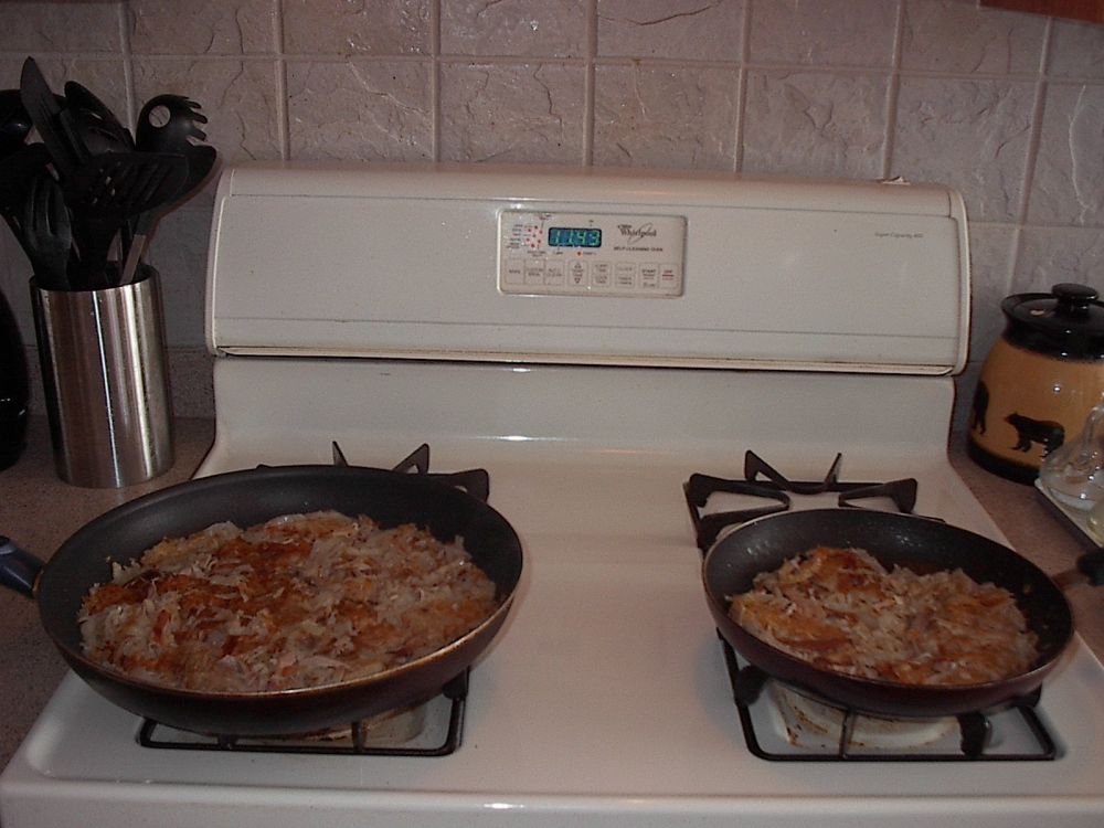 左右开弓做起了早餐 -- D版火鸡土豆煎饼。