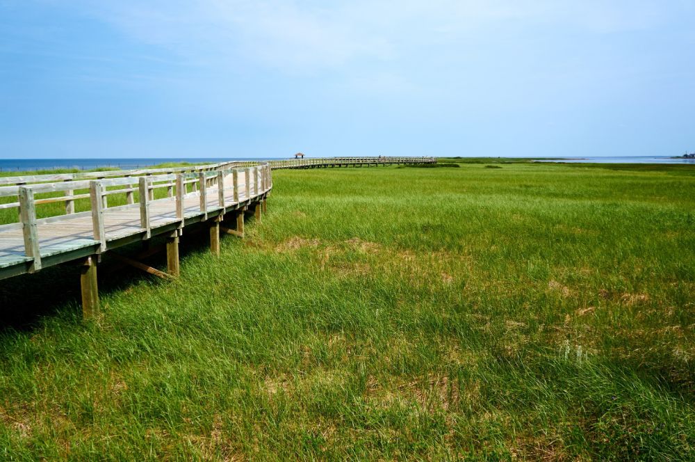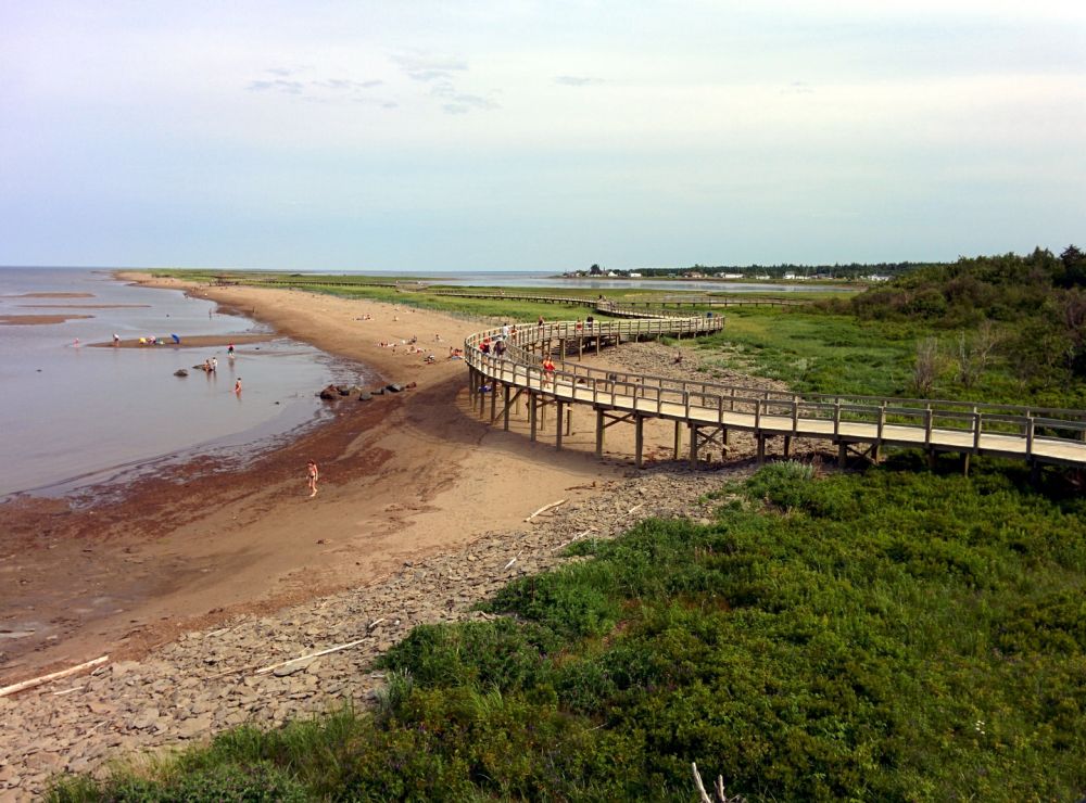 从蒙客屯的机场开车去了一个一般游人不太会去的地方,名字是法文,音译成中文就是拉布客肚食(La Bouctouche)。这是一个由海风,海浪自然形成的沙滩,据说有独特的生态环境,所以建了一个boardwalk,以保护环境。这个地方现在还在不断地变化,每次有一个大风暴,样子就会变掉。