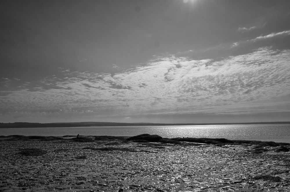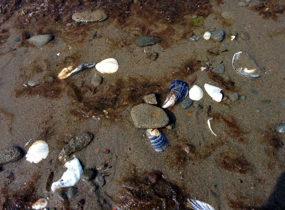 这里的水很浅,离开沙滩近百米,海水还只达膝盖。海里还有几个自然形成的沙丘。沙滩上有死贝壳,死螃蟹,死水母和活人。海水里则有活螃蟹和活水母。