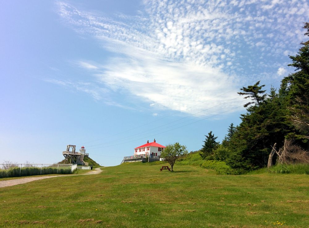 在高潮和低潮之间有整整6个小时,我们就去了一个叫愤怒角(Cape Enrage)的地方,距离好望石约一小时车程。这个地方风和日丽,脾气好得很,一点没有愤怒的样子,名不符实: