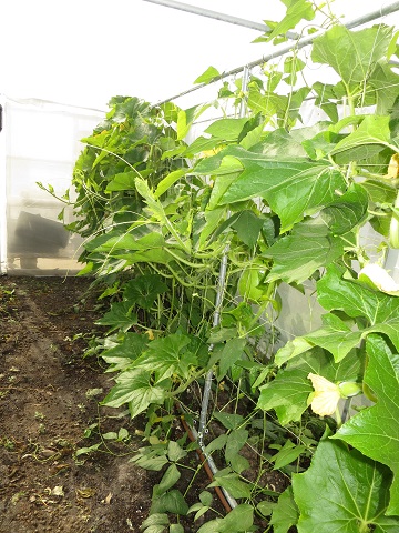 冬瓜藤爬在架上,这是两个方向拍的。佛州酷热的夏天并不影响它的生机勃勃。