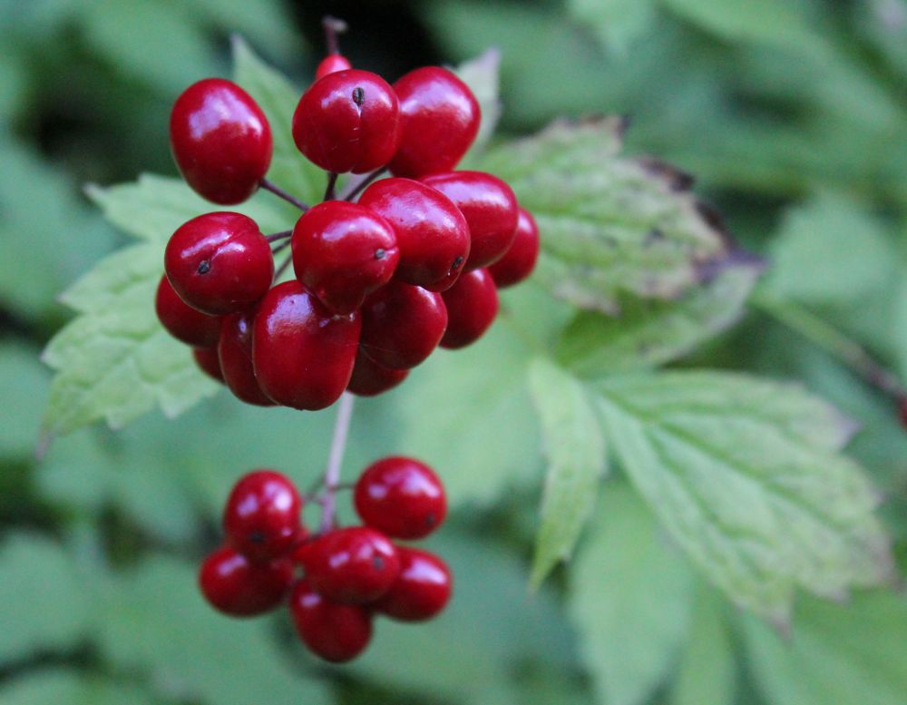 毒莓很少,我只警惕一种:剧毒莓 Baneberry , Bane! 听名字就够吓人的:毁灭者,害人精;祸害,拉丁文意思是谋杀者。据说小孩儿吃了5颗就归西。剧毒莓分布于欧亚和北美,由于鲜红的浆果诱人,在花园,公园里栽培也很多,要小心!