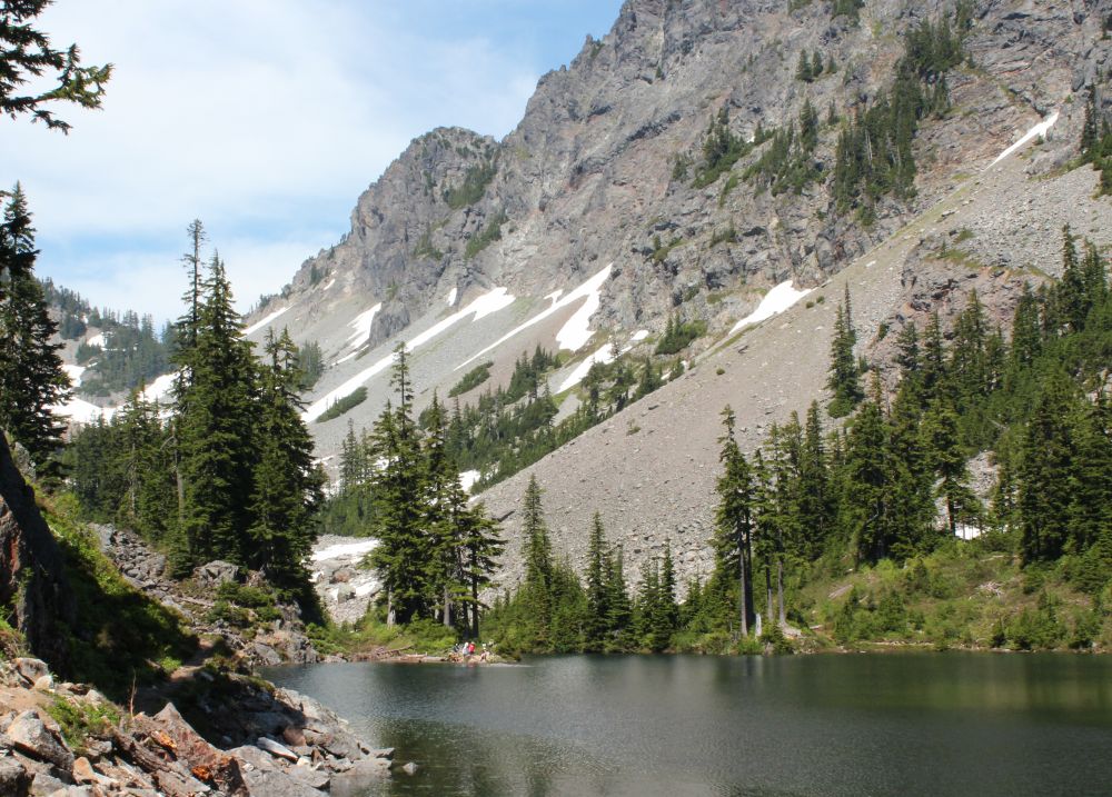时至七月末, 三文鱼莓Salmonberry 已经下季了,另一种野莓,顶针莓Thimble Berry,酸甜可口,满山遍野。浆果艳红,带粉色光泽,一路吃个不停。可食莓, 象野生蓝莓 Blueberry, 黑蓝莓,黑越橘果Huckleberry,红蓝梅, 红越橘果Red huckleberry,沙龙白珠Salal, Thimbleberry, 黑莓 Blackberry 都是满山遍野生长,有时在森林里形成密不透风的墙;还有些象高山蓝莓 Alpine Blueberry 地毯式生长,刚刚开花挂果。