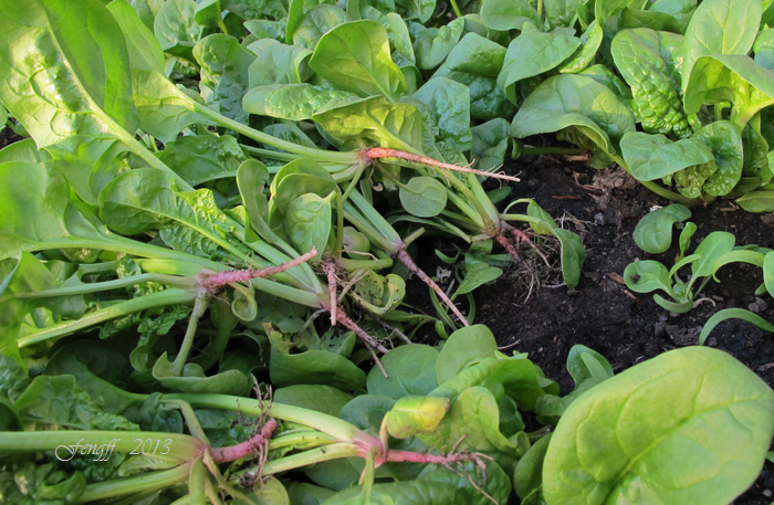 23. 5月初收获的菠菜。 这些菠菜是去年秋天种的,菠菜能度过蒙特利尔零下20--30摄氏度的寒冬(Zone 4b),成为开春地里最早的收获。 大部分菜友住的地方秋菠菜都能过冬。