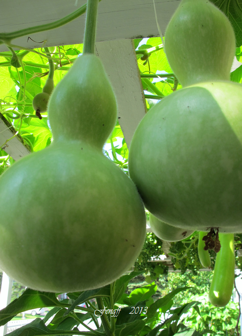 55 种了一棵葫芦和一棵瓠瓜。第一次种,才知它俩是同时结瓜。希望明年可以把二者的结瓜时间错开,这样就不会同一时间收很多瓜。