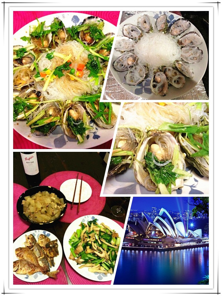 Lucky姥爷在悉尼也闲不住呢,这回有口福的是儿子全家了,呵呵! 今天买来生蚝,就随意来个《葱姜生蚝》吧, 还有姥爷自己钓的鱼啦。日子怎么过,都看自己的心态了。 葱姜生蚝