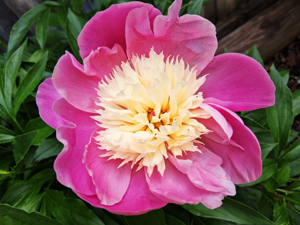 另外,我还发现,这株芍药还有一个让人很欣喜的特点,它不容易倒伏,我今年有三株芍药都开花了,都开在前一周有大风有小雨的时候,本来,今年没有暴雨,我虽然遗憾没有闪电,这雨下得不痛快,但是对于喜欢倒伏的芍药来讲,它就可以很避免被暴雨一夜吹成满地的落红了,可是,谁知道,没有暴雨,有点大风也不行,半天的大风,就把我的芍药花吹成贴地开花了,这花儿虽然美,缺少了芍药仙子的风雅了。但是,一碗美丽这款芍药却不同,它不但不受影响,而且花儿开得还更加可爱漂亮,之所以我觉得更加漂亮,可能是因为其他哪几株芍药,都倒伏,状态不好的原因吧。