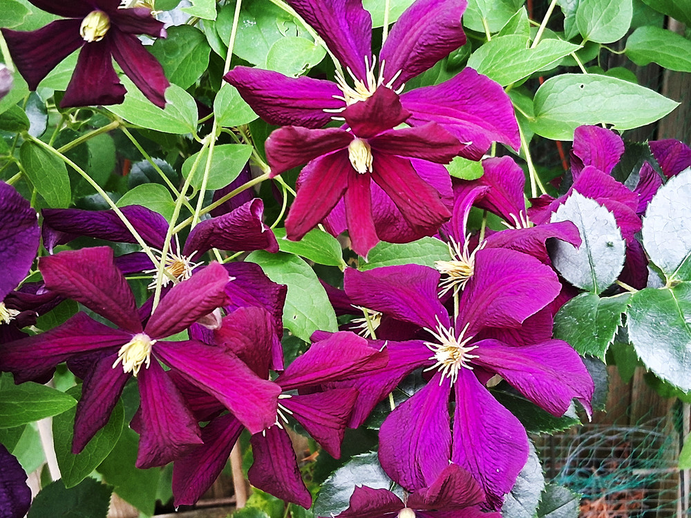 再说第二年春天,那株红色的铁线莲竟然爆花了,我还是被这株幸存下来的铁线莲迷住了,我决定要再买铁线莲,并且买了鸡网,很有意思的是,装备齐全后,虫子也少了,我那依旧保持着自己酸碱度的土地,也不怎么欺负铁线莲了。