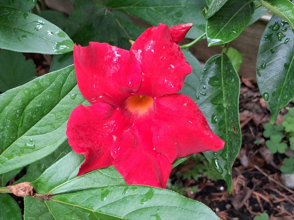 第二年,只有一株大红色的非常健康,很奇怪,兔子和虫子都不怎么骚扰它,也不吃它,我还真不知道是为什么,我只是觉得铁线莲小苗,很难存活,而且,即使没有虫子和兔子的光临,一株暴晒后容易发作的立裤病也能要了它们的小命。