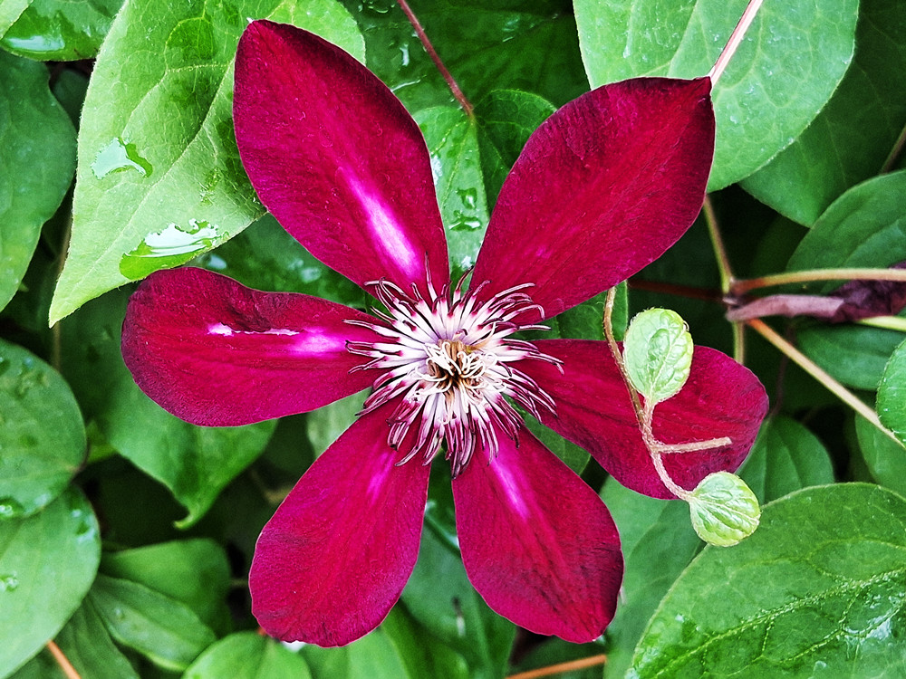 之后,就是它的花完全盛开,完全展开的那个样子,就显得很大很漂亮,非常让人开心。这个感觉特别有意思,所以养铁线莲虽然我是从最粗放易养的品种开始养起的,但是我已经收获了很多的快乐。