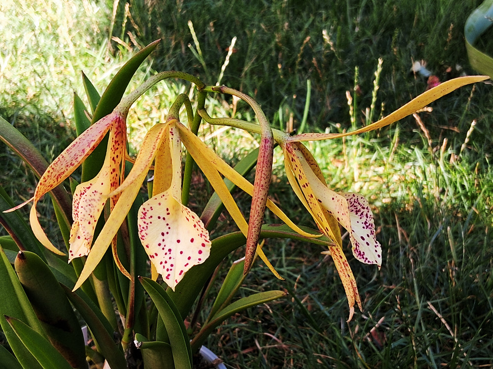 今天给大家欣赏我的夜夫人黄鸟。它是属于白拉索兰,英文名字是叫brassavola。它和卡特兰很相似,但是它的叶子要细长很多。另外它的花也格外秀气。花瓣很细长,有一些像鸟的翅膀。