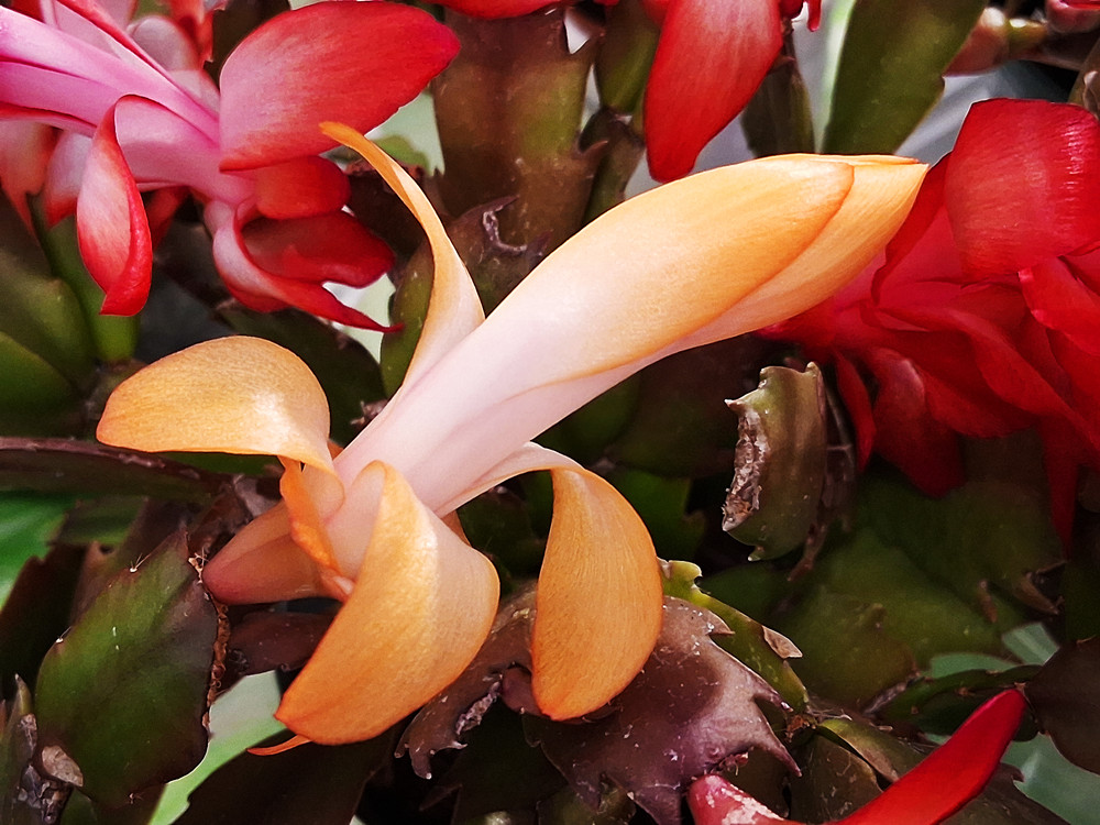 花儿开得真是美啊,即使,我没有很好地呵护它们,它们还是盛开得这么美,蟹爪兰,就是一种自带气场的花儿,由不得你不喜欢它们。