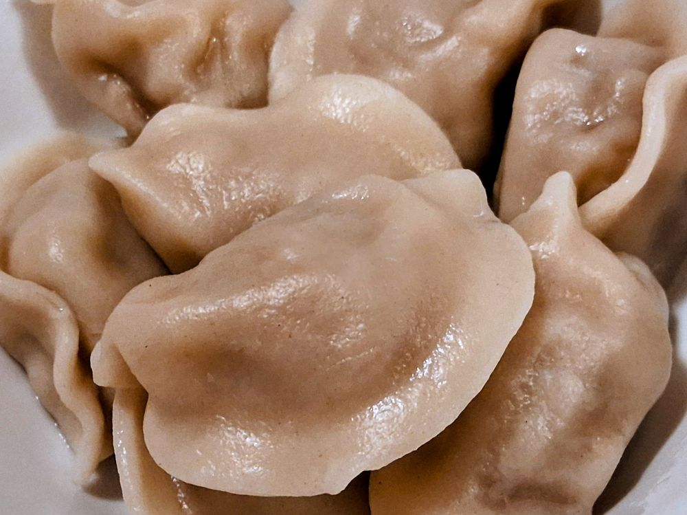 这饺子看起来像是荞麦做的皮,馋人。问好橄榄。
