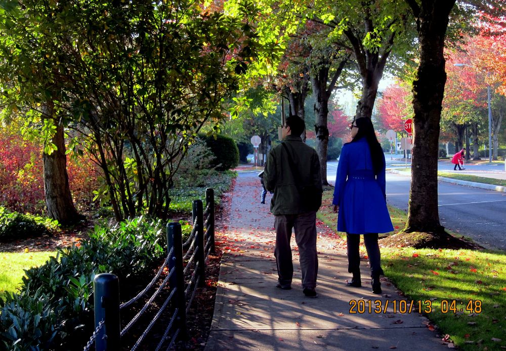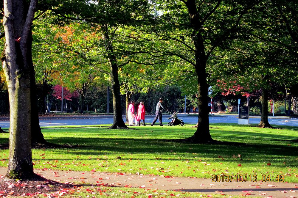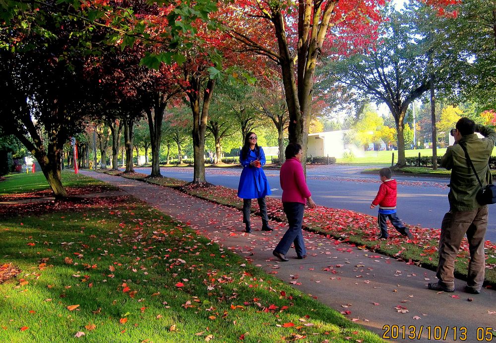 金秋十月的一个周末,我们从国内来西雅图探亲的老姐妹,想去“微软”工作园拍摄枫叶,孩子们【其中有两男孩正是微软的工程师】立马驾车,带领我们三大家子浩浩荡荡长驱直入微软园。两男孩都是携带的“长枪短炮”,惟独我唱主角的却只拿着一个卡片机【一年飞抵两次美国,这次偷懒没带来我的“重武器”】。也罢,像素不行,就在色彩上做点弥补吧,我想。