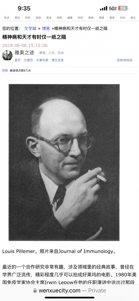 视频中跟我的说法相似,马斯卡就是一个精神疾病的患者,这在智力超群的人士中并不少见。如果大家感兴趣,可以阅读我在2018年写的题为《精神病和天才有时仅一纸之隔》的文章,涉及免疫反应的Alternative Pathway的发现。
