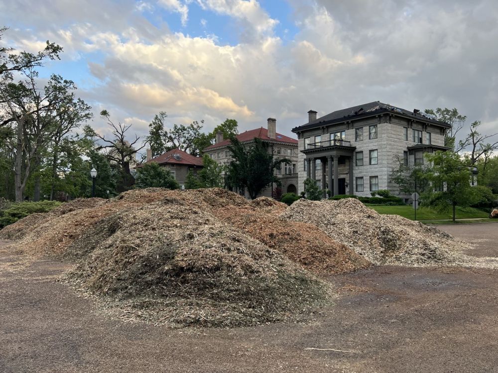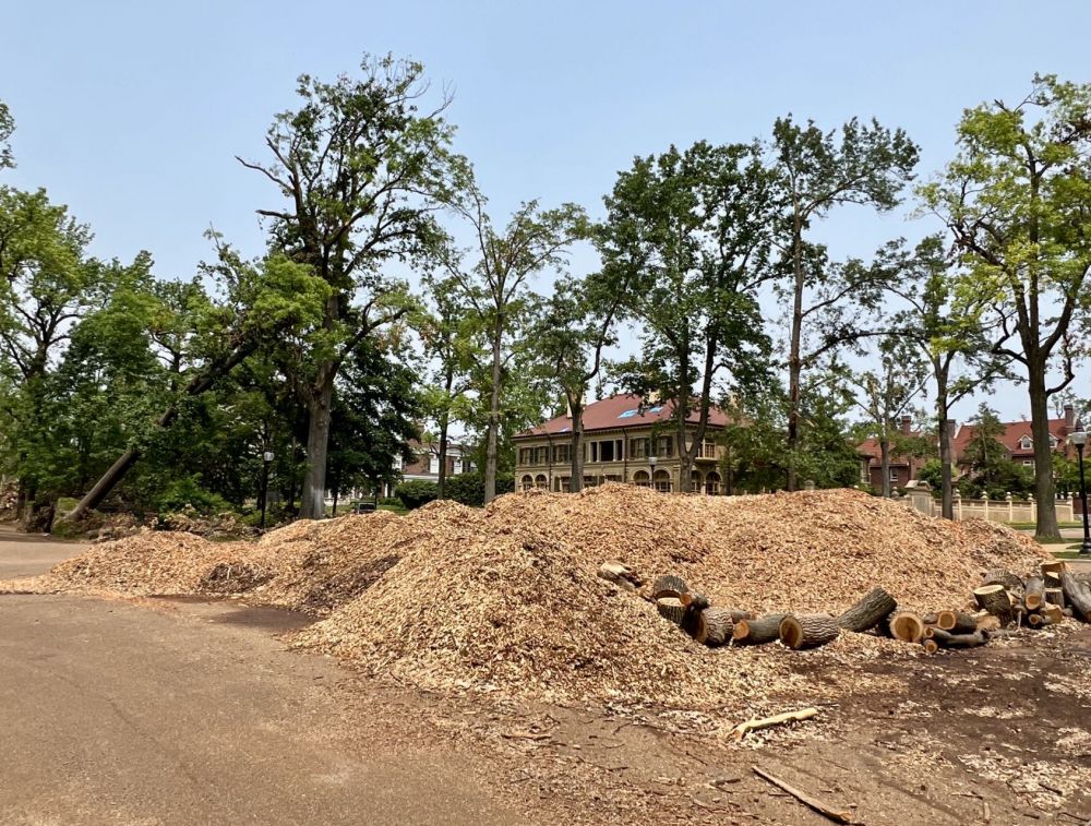 龙卷风的灾难己经过去几周了,我也应该放些鼓舞士气的照片,在灾难过后,看看那些巨树的树桩以及天天在运的debris。从这些树桩的年轮可以想象,这些树的规模以及当年的风采, 我是喜欢在林荫大道散步的人。