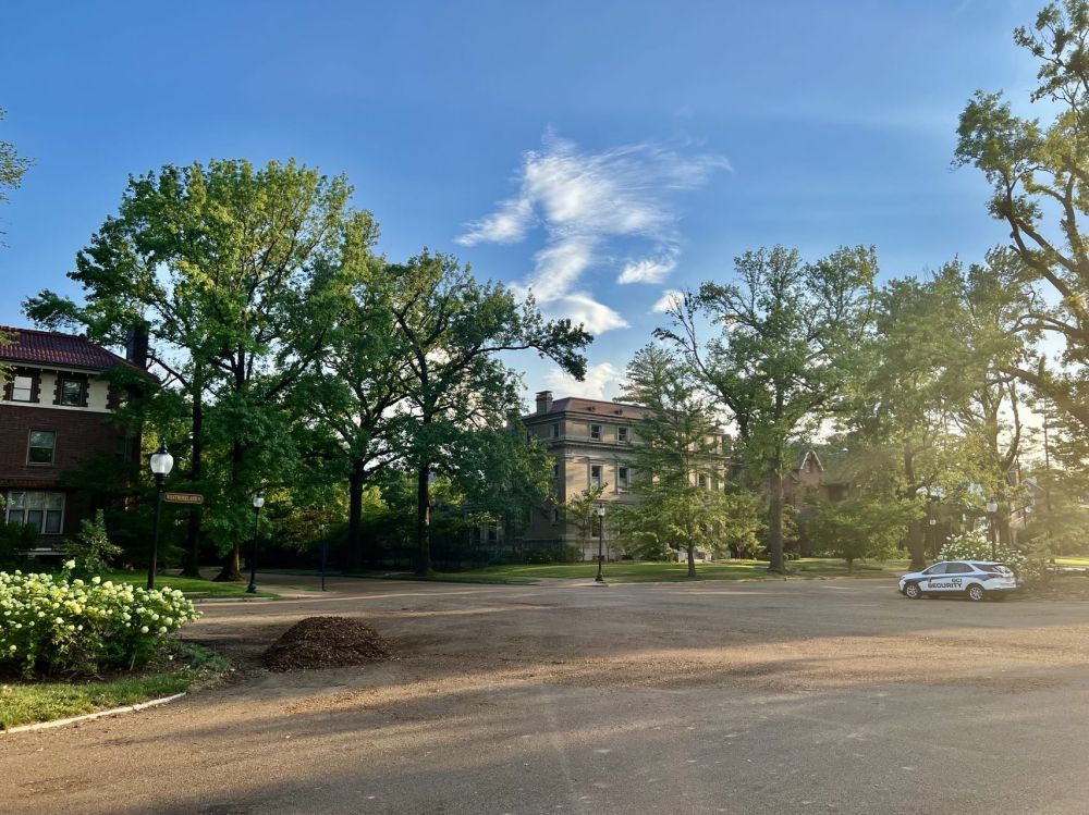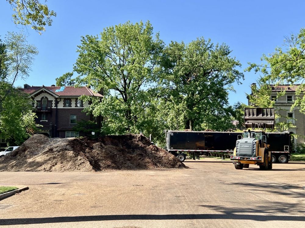 文章刚发出去不久,我当时就说过,古董社区的那面星条旗不会在那里太久。周五上下班看见了移树梢山的过程,正好是那星条旗消失的那步。下班回来仍然看见一个小堆,32号古董房主是否还有一面星条旗?