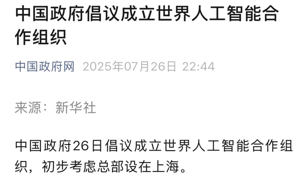 中国以新华社通稿的方式提出主导成立一个“国际人工智能协作组织”,并计划将总部设于上海。这一倡议体现出中国对全球治理的野心,实际上却反映出对现实格局的严重误判。