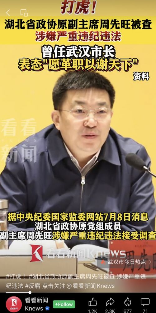 在封城一年后周先旺卸任武汉市长,转任湖北政协副主席直到2023年换届离职,今天被抓说明他也没有完全软着陆。他当政时严格封锁疫情信息的做法是有罪的,眼科医生李文亮与我的同济室友外科医生江学庆的死亡都与那个大环境有关。