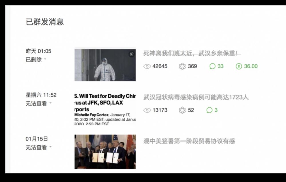 为我的三篇博文默哀致敬:1。首篇是写中美第一协议记者会,措辞十分小心,不让贴出;2。第二篇报道英国帝国理工预测1723例病人,放行阅读1.3万次,晚上还热读,一觉醒来被和谐。有人认为相对于国内当时的36例病人,帝国理工的1723例预测是谣言,现在全国543例,你们还有空间攻击洋人忘我之心不死;3。第三篇写我同学,但是重点仍然是帝国理工,放行阅读4.2万次,起到唤醒民众之功力。但是我主动撤稿,其中原因需要待到天亮的那一天才能说出。说完这些,我对腾讯有个小小的请求:你们别在沒通过或撤了的文章上打橫线好不好?别每次弄得像是被枪毙似的[偷笑][疑问]