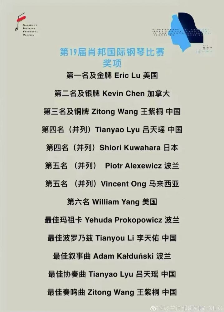 谢谢斯坦福本科和华大MD老爸转来的图片和留言:“这中国人把肖邦赛也办成了奥数赛,这让其他族的学钢琴的人如何活啊?川叔要生气了[Happy]。你应该写一篇文学城登顶的文章。”