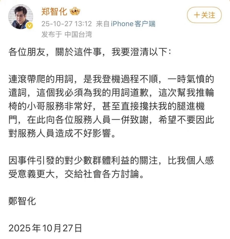 台湾歌手郑智化扯谎了,他沒有连滚带爬,而是至少在三位乘务人员的帮助下上的飞机。飞机没有滑梯装置确实有待改进,但是深圳机场人员还是很尽职的。郑智化应该道歉,但是他这道歉词应该给王世坚些功劳。这位台湾歌手应该说:“我借用了王世坚立委的“连滚带爬”,实质上登机过程还是在乘务人员的帮助下“匆匆忙忙,游刃有余”,我为自己的失言道歉!”。
