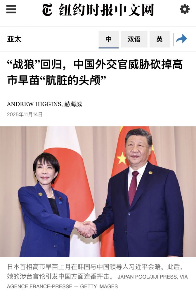 更严重的言论涉及中国驻大阪总领事薛剑(Xue Jian) 的“砍头或者斩首” 的报道,这是他在X上的原话翻译,他使用的是日文:“那个脏脖子必须被毫不犹豫地砍掉。你们做好觉悟了吗?”。薛剑当时在X上转发了日本著名的《朝日新闻》关于日本首相高市早苗就“台湾问题”的表态,也就是说薛剑是配文写的推特。这已经不是猜测,已经很清楚他的语言对像直指日本新任首相。
