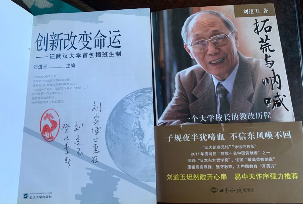 同济美国牛人:“深切缅怀敬爱的武大永远的刘道玉校长! 刚刚看到刘校长逝世的消息,非常悲痛!遗憾再也没有机会与他交谈了。上次与他交谈是2013年,他儿子为我们拍照合影,告别时他把已经写好寄语的两本书送给我。刘校长天堂安息[Worship][Worship][Worship]”。