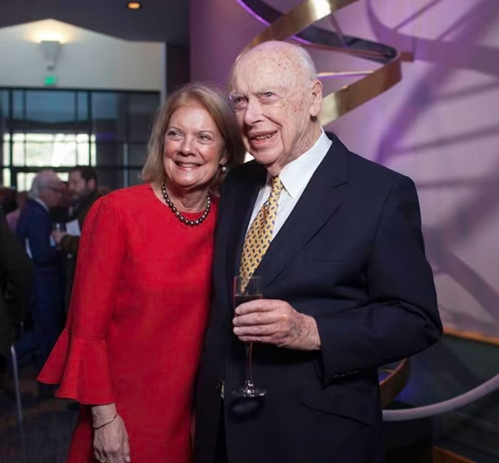 老傅分享的照片里面有Watson夫妇的合影,他在40岁才与哈佛艺术史毕业生Elizabeth Lewis结婚。从名字和姓氏看都是美国英裔后代,Watson以他的爱尔兰血统自豪,他也因反犹言论惹上过麻烦。我常说天才与精神病人只有一纸之隔,Elizabeth Lewis与James Watson所生的两个儿子中就有一位是精神分裂症患者。