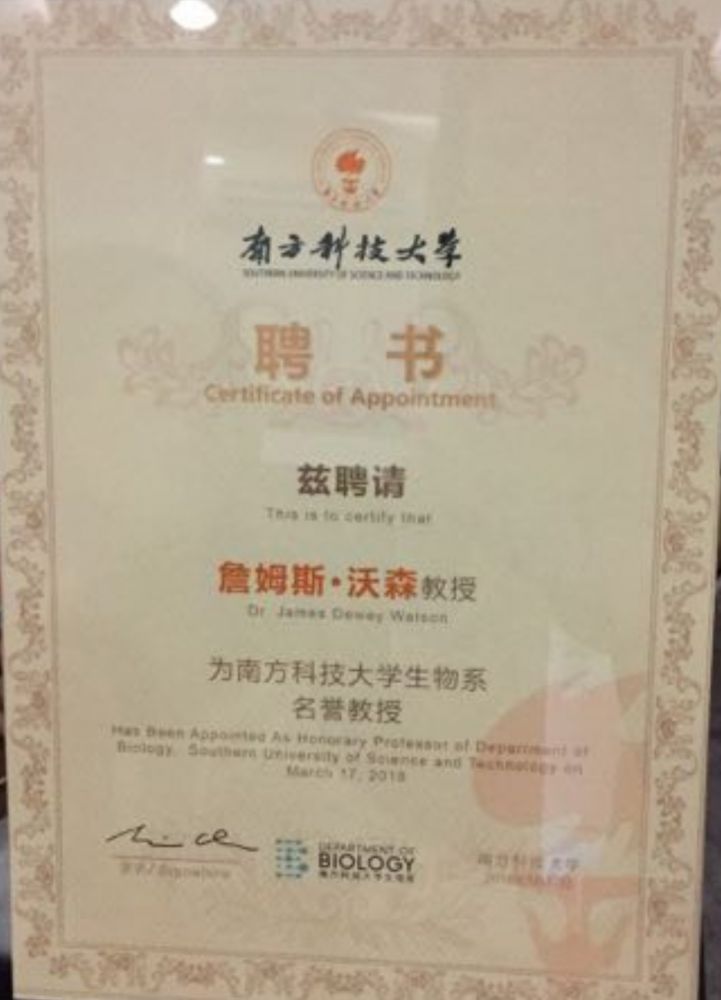刚刚看见新闻华森博士97岁刚刚去世。和李政道同岁。”