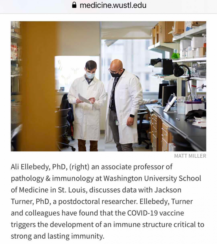 我以前提过华大年轻教授Ali Ellebedy(简称阿里教授), 他最近在疫苗的人体免疫应答方面做出了重要的工作。他是位埃及人,在美国St. Jude研究儿童医院获得PhD,Emory的人类疫苗大佬手下做的博士后,华大识人才雇了他。这已经被证明是个非常成功的雇人决定,他的研究组已经有一篇关于流感病毒疫苗的论文在Nature发表,去年迎战疫情迅速转向研究新冠疫苗的人体免疫反应。