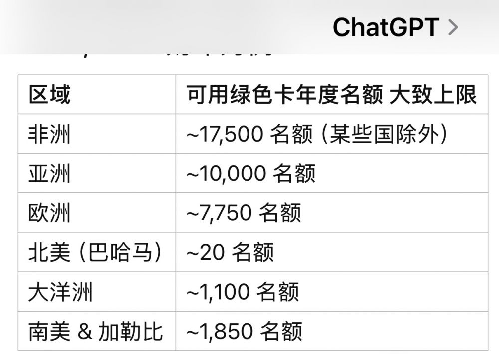 Diversity Visa Lottery的绿卡数量的地区分布。