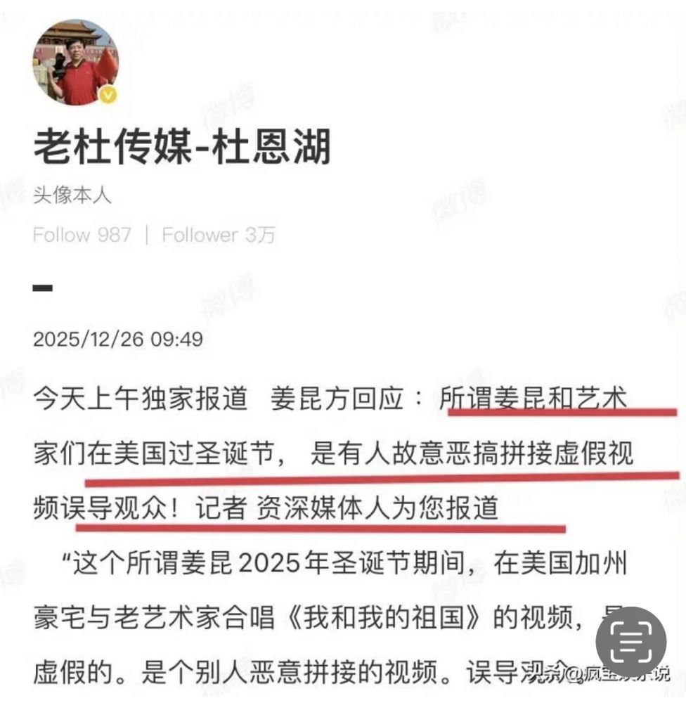 这些信息坐实了一个事实:姜昆在2025年12月19日身在美国洛杉矶,正在准备过圣诞节。在美国过圣诞节本无可厚非,唱红歌也可以理解,大可坦坦荡荡地呈现,实在没有必要躲躲闪闪。