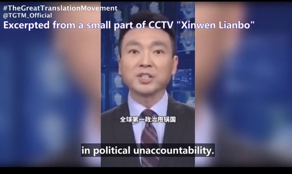 我们在中国成长的过程中,一直被教育要讲礼仪、谦让、至少应该讲道理。现在所列事实几乎构成了一个历史性的反证,中国政府通过央视这样的国家媒体,对美国展开了程度极其夸张和令人难以想象的公开攻击。正是在这种背景下,才出现了所谓的“翻译运动”,即把中国那些内部使用的宣传口号翻译给外国人看,让世界知道央视究竟在说什么。