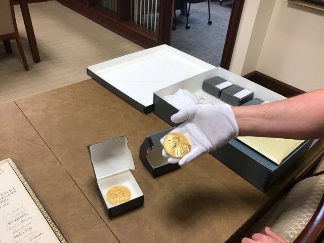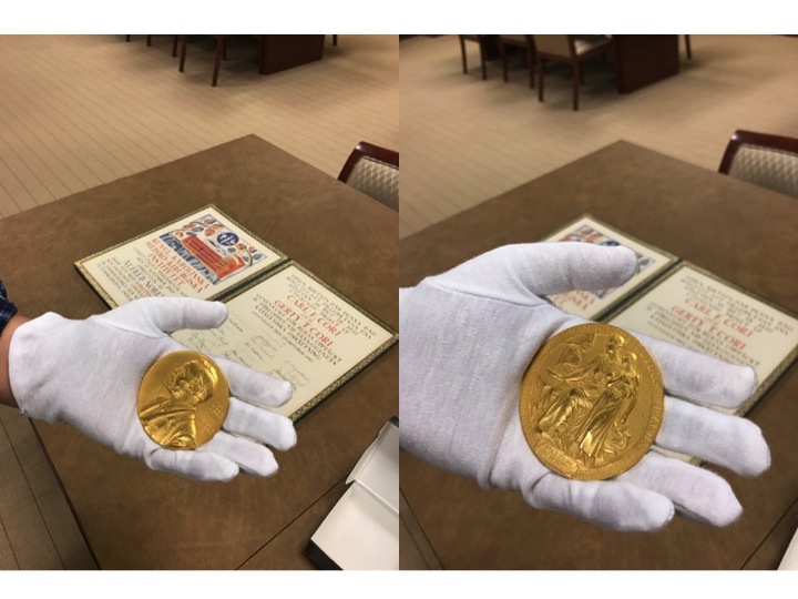 圣路易斯华盛顿大学那个曾产生九位诺贝尔奖得主的伟大实验室掌门夫妇,Carl 和Gerty Cori的诺贝尔奖章早已正式赠送给WashU收藏。我本人去参观展览时亲眼见过实物,后来还和图书馆管理员预约,近距离触摸过那二枚奖章。