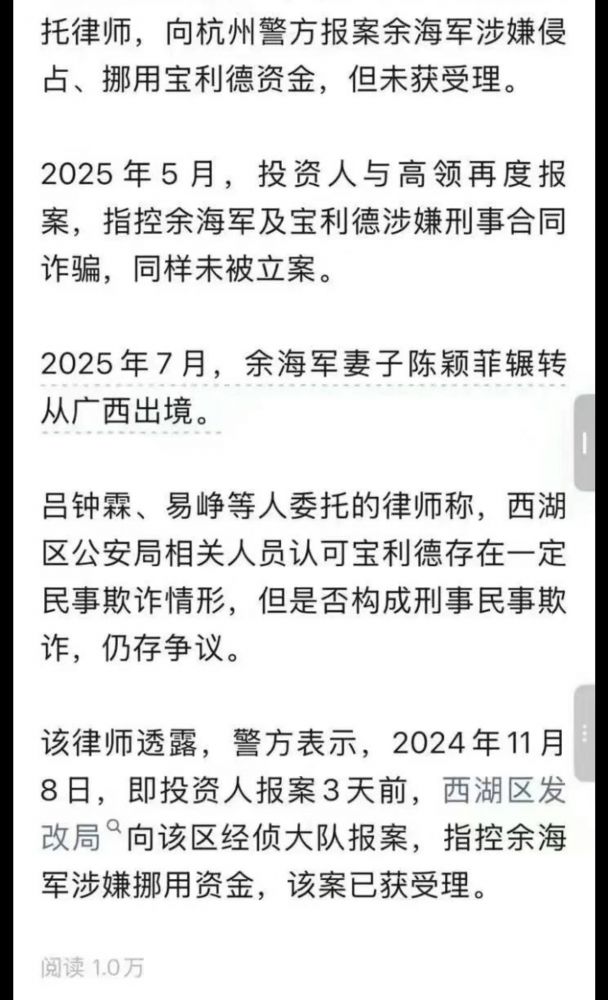如果不是猫儿抓张又侠,关于金刻羽的这条新闻几乎可以肯定会成为特大新闻。宝利德现在已经崩盘,因疫情爆雷几十个亿,余海军与不同女性育有九个孩子。余海军已经成为限高消费的老赖,老婆则已经带巨款和孩子们逃到海外,据说是在加拿大。