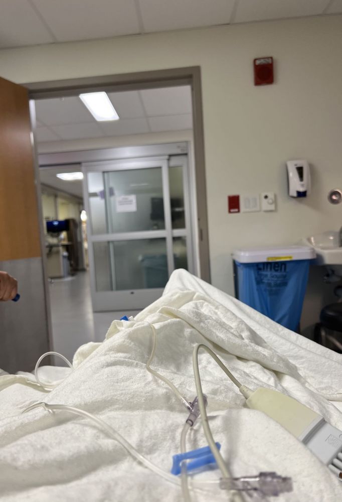 清晨到达医院后,他们是反复确认我的姓名和生日。一位在圣路易斯出生和长大的护士又重新问病史,她为我测量了心率、呼吸和血压,一切正常。静脉注射开始时,与以前在胳膊上抽血不同,这次是在手背上找血管。我的血管条件很好,护士说回血非常快,整个准备过程也十分顺利。