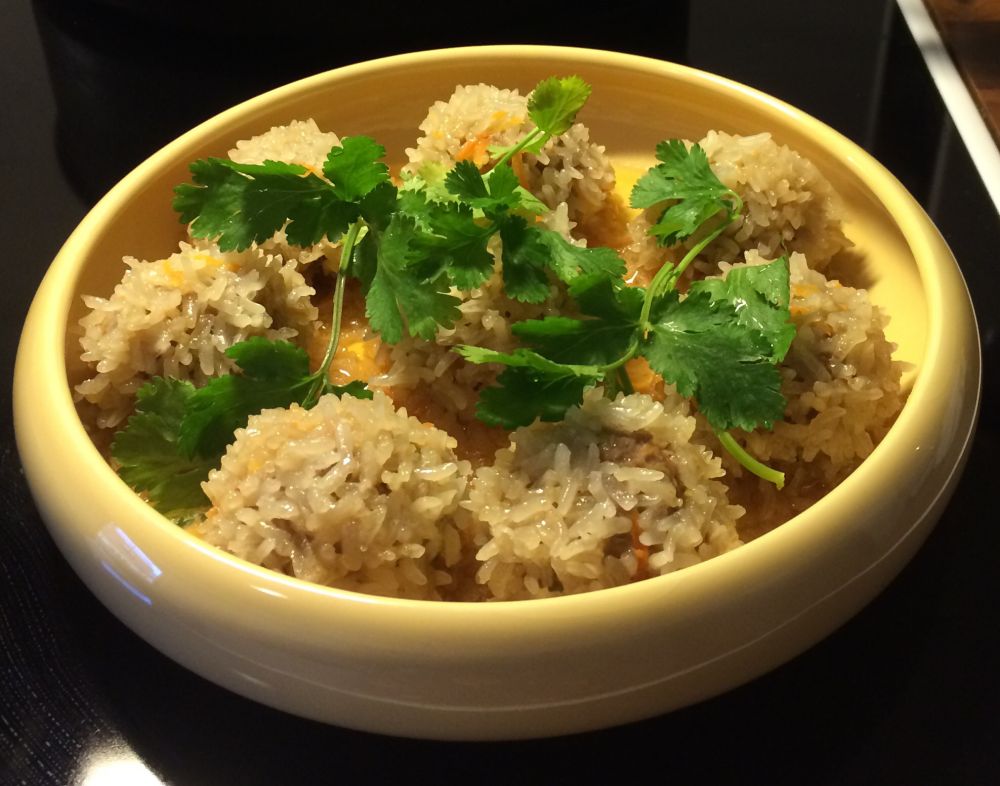 糯米丸子,青菜沙拉,鸡蛋三文鱼