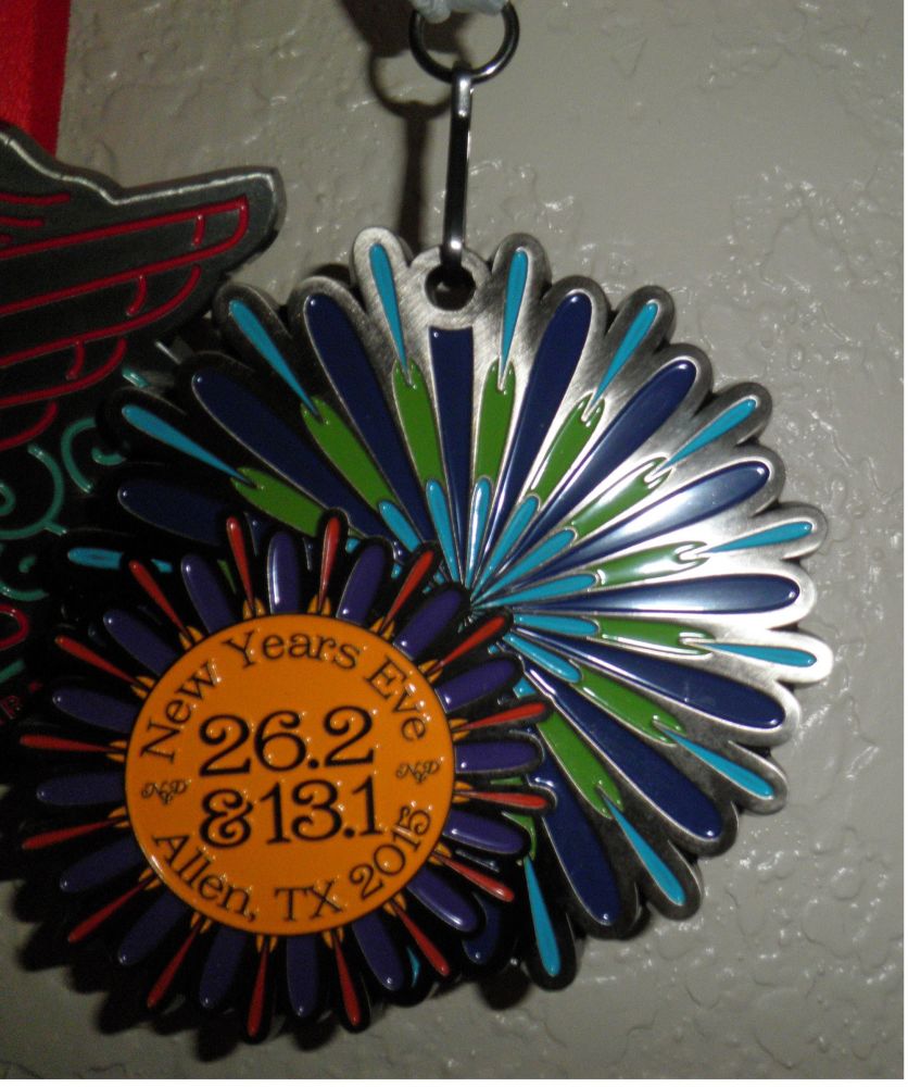 12月31日,2015年的最后一天,New Years Double 马拉松的终点就在眼前了。我拼了老命在向前冲,哪怕是在过线时的那一刹那,像一辆破车跑掉了轮子,发动机冒烟水箱开了锅,我也在所不惜。终于把那个终点大门甩在了身后,还好,这辆老车没有跑散了架,还能再跑。而Finisher 奖牌到手了。