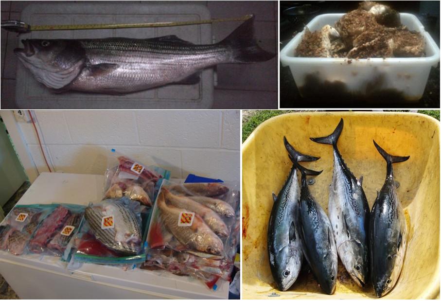 8/10/2013Saturday.Wind5-10knots,Wave1ft.Launch8:30am,backtoland7:30pm。小黄鱼很多!第一次钓了1/3cooler小黄鱼。约中午时分决定开始Live-lining,结果小黄鱼纷纷被偷,一天下来被偷十几条,nottoobad!但是,Striper变得越来越狡猾了,常常把小黄鱼咬死而没吞下。所以咬钩不少,上钩不多。钓了七八小时,得Striper四条。创下今夏Live-lining多个第一:第一次没达限[