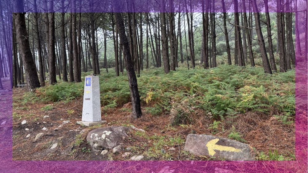 朝圣路上的里程碑提醒着前进的方向和到达终点的里程。