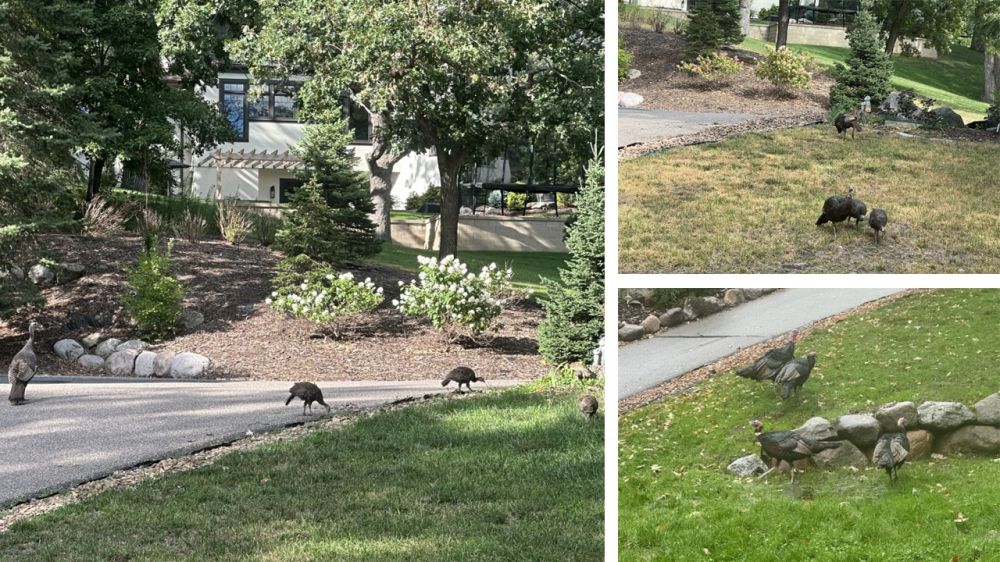 说来我和这种大块头的鸡或鸟还是有交情的。它虽体态壮硕,但小跑几步后,冲上树枝的姿态挺迅猛的;它虽表情笨拙,但追求配偶时,也是一个为爱勇敢、浪漫无限的恋爱脑。每当它们成群结伙来院里做客时,我都会蹑手蹑脚地躲在窗后仔细侦察。之所以这么“悄悄行事”,是因为它们的通讯能力挺发达的。一旦周边出现危险的“风吹草动”,也没见彼此间打手势、递眼神啥的,它们一眨眼间就会消失在后院的树丛中。